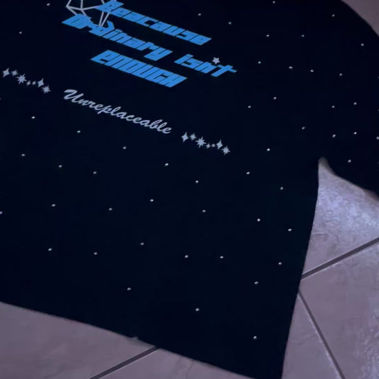 Malibu “Because Ordinary Isn’t Enough” Rhinestone boxy tee