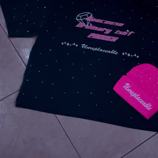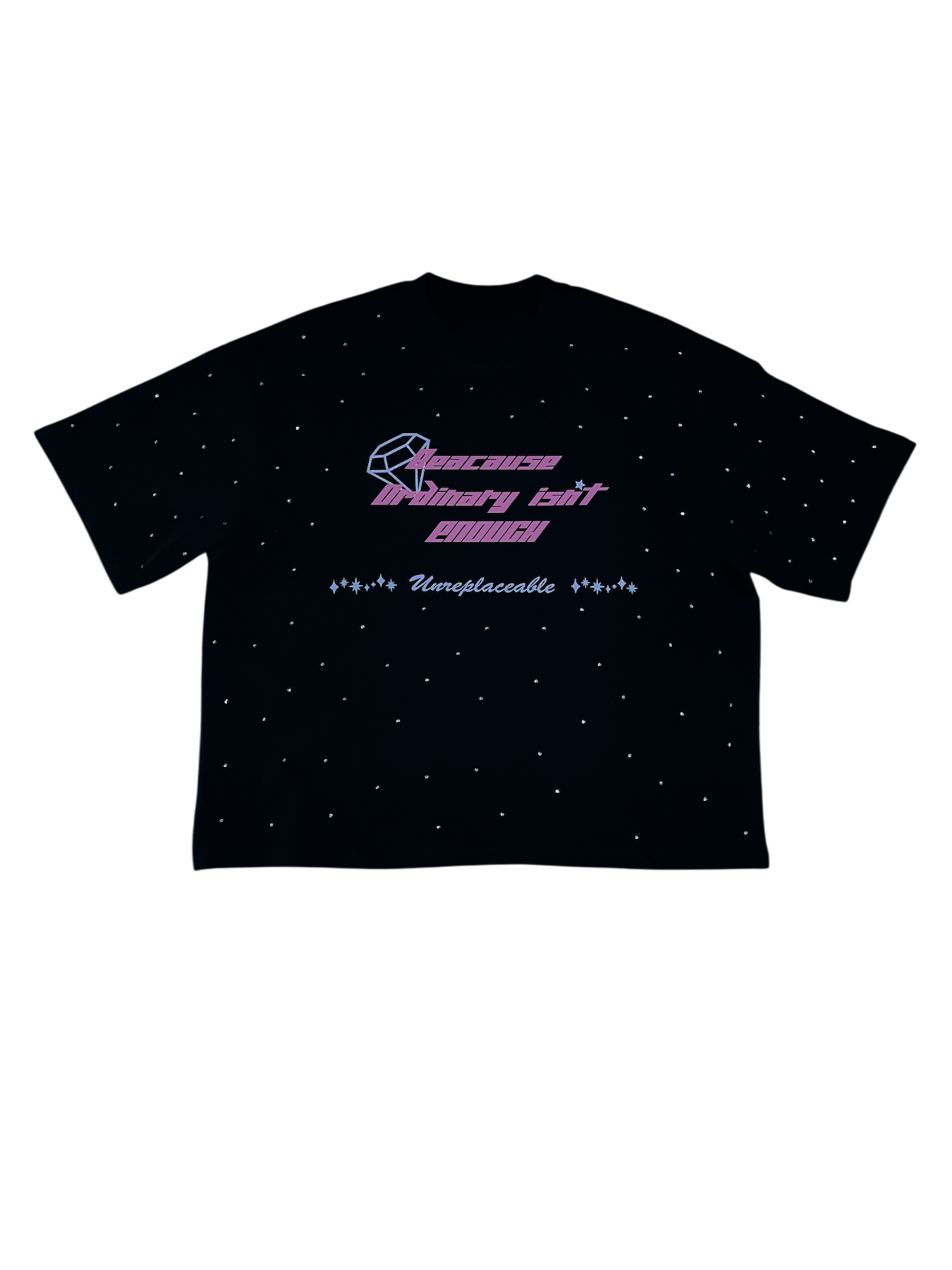 Mona Lisa “Because Ordinary Isn’t Enough” Rhinestone boxy tee